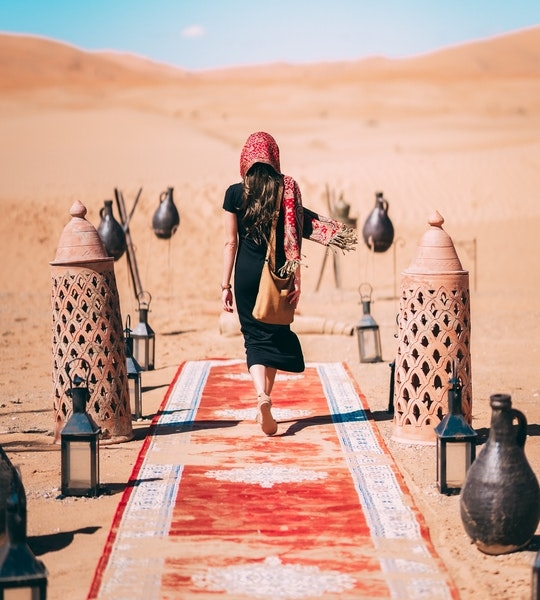 On day 4, after having breakfast, you have plenty of time to explore the biggest mall in the United Arab Emirates, Dubai Mall, with its fascinating stores and luxurious brands. Then, you can stroll up and down the modern Walks of Dubai as you admire the skyline of Contemporary Dubai. You’ll definitely get inspired by the futuristic architecture and enjoy the glitz and glamour of modern Dubai. Afterwards, there will be an optional Bedouin trip to the spectacular desert of Sahara. In the afternoon, we will enjoy the striking landscapes, with a taste of luxury in a Land Cruiser 4X4 car through the vast desert. Treat yourself to an adventure in the Sahara Desert, drive over the golden sand dunes, and leave the crowds behind. Upon your arrival, you can explore the high reddish dunes and take incredible pictures as you admire the magical sunset in the Eastern Desert. As you arrive to the camp, you will live a full traditional Arab night like no other, including a camel ride, henna tattoos, and sand surfing. Try an oriental dinner with the best Arabic dishes, along with the Shisha (hookah), and enjoy a Bedouin night with the Tanoura show and belly dancing. Finally, we will camp in the desert and spend the night under the stars.