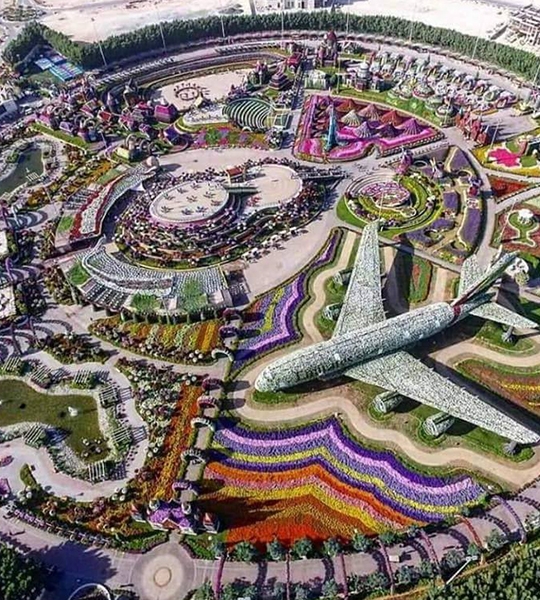 On day 7, we will go on a tour to the outstanding Miracle Gardens and witness its beauty in full bloom, with the 150 million beautiful flowers. You will be stunned by its colorful arches, patterns, and magnificent countless shapes. This stunning scenery has set two Guinness World Records for the largest vertical garden in 2013 and the world's largest flower sculpture shaped like an Airbus A380 in 2016. Afterwards, we will head to Dubai Frame, the architectural wonder positioned in a specific way to view Dubai’s modern life on one side and older parts on the other side. Also, the iconic structure tells the story of Dubai’s history and evolution using the latest technology.