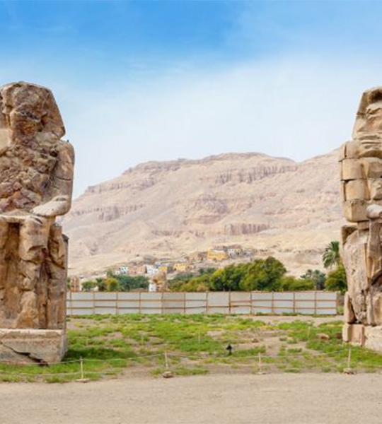 On the way back to Luxor, there will be time to make a short stop at the Colossi of Memnon, Amenhotep III’s funerary temple. Two giant statues standing proudly on the western bank are the old complex’s only remains.